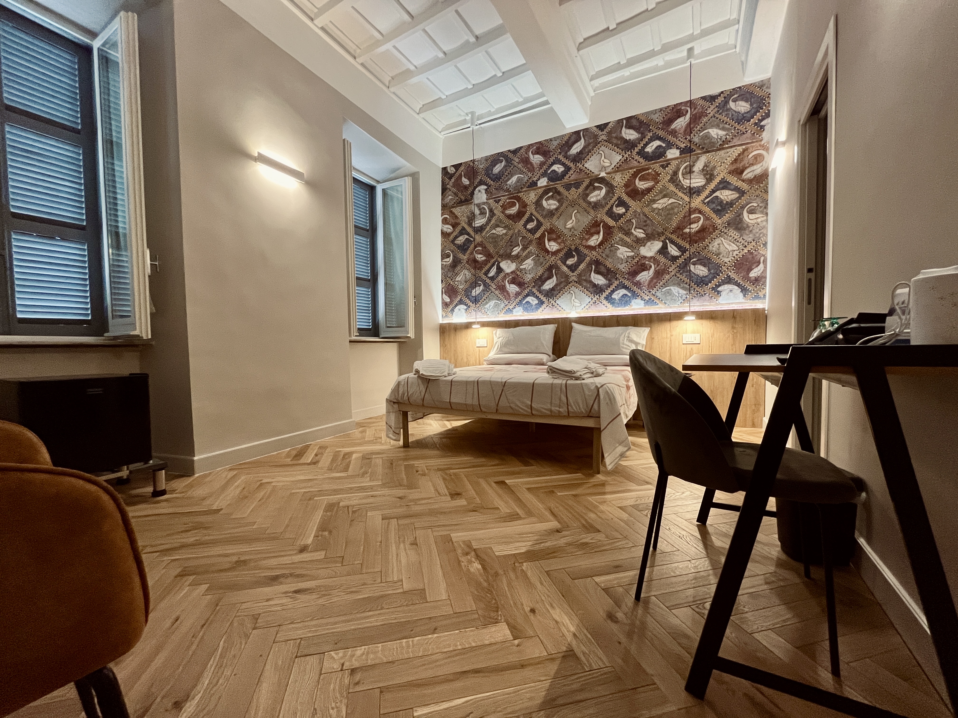 All'interno della camera troverete un minifrigo a vostra completa disposizione, una smart TV con accesso ai canali nazionali e ai principali servizi di intrattenimento digitale, e un ampio bagno privato, dotato di una spaziosa doccia doppia, per un’esperienza di puro benessere.