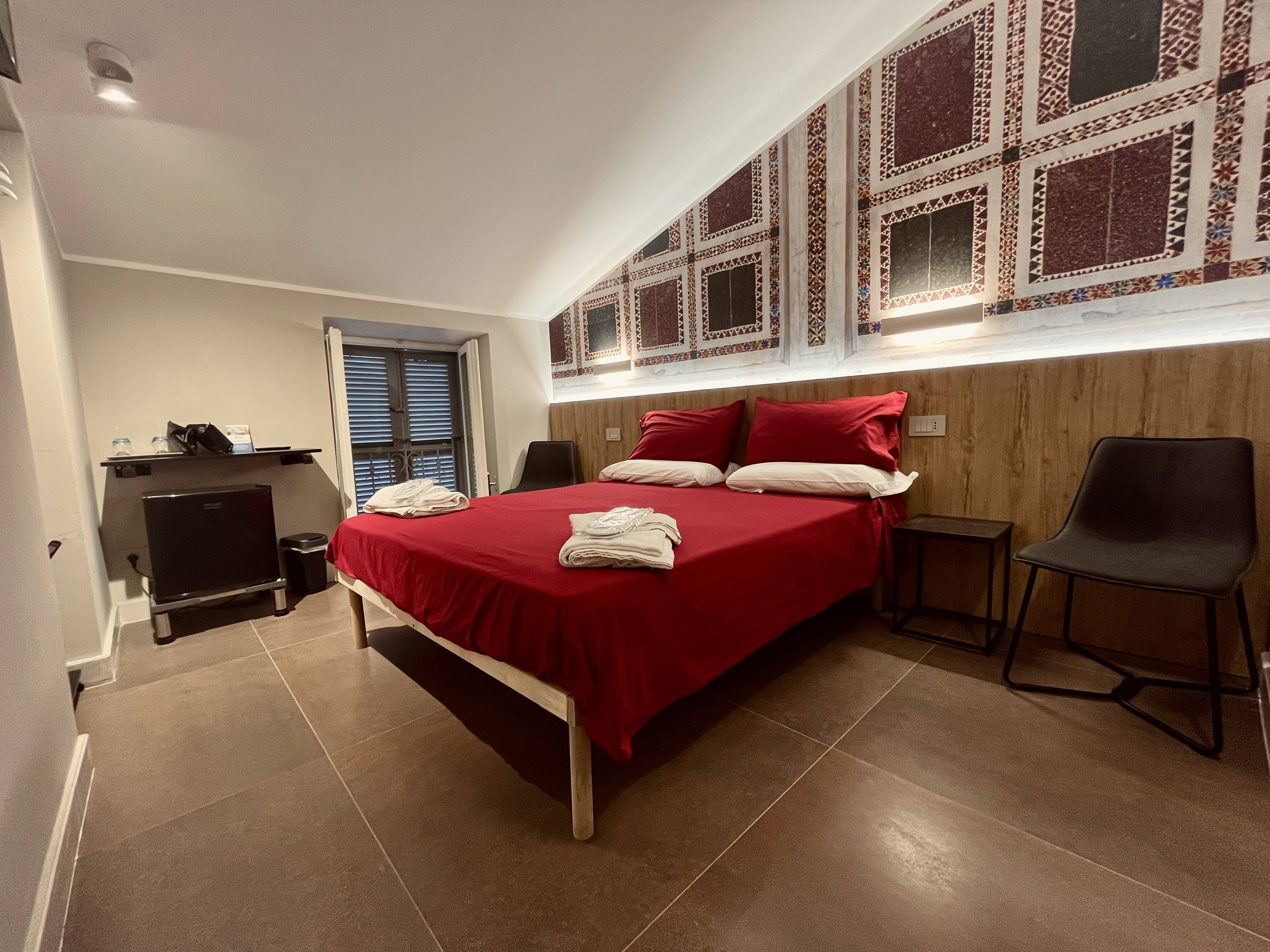 All'interno della camera troverete un minifrigo a vostra completa disposizione, una smart TV con accesso ai canali nazionali e ai principali servizi di intrattenimento digitale, e un bagno privato, dotato di una spaziosa doccia.