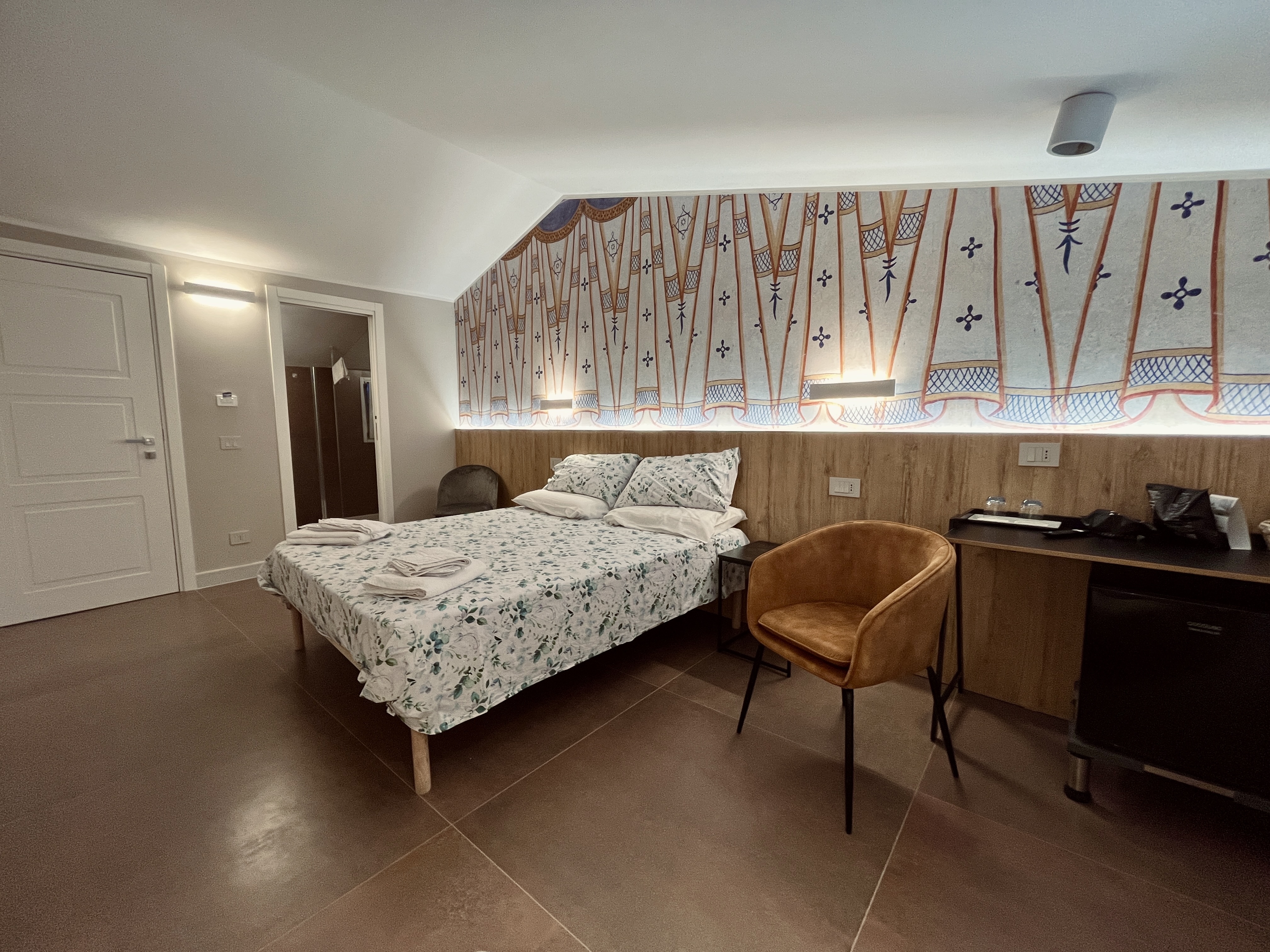 All'interno della camera troverete un minifrigo a vostra completa disposizione, una smart TV con accesso ai canali nazionali e ai principali servizi di intrattenimento digitale, e un ampio bagno privato, dotato di una spaziosa doccia doppia, per un’esperienza di puro benessere.